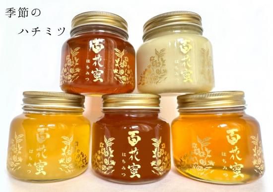 ・花の種類や季節の移ろいや、巣によってハチミツの風味が異なります。個性を大切にそのままビン詰めしました。巣ごとに季節ごとに変わるハチミツを、混ぜずにそのまま瓶詰めしたので、まさに一期一会の百花蜜になりました。