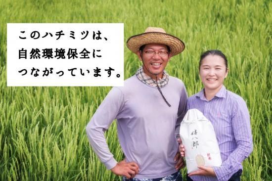 農薬不使用でお米作りをしながら養蜂を行っています。私達が農薬を使わず広範囲でお米作りをすることで、安全にミツバチが生息できるようにしています。